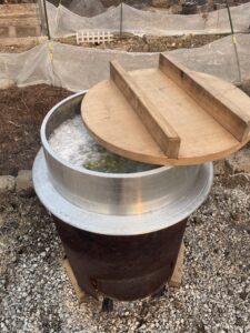 100Lの大釜を庭に
