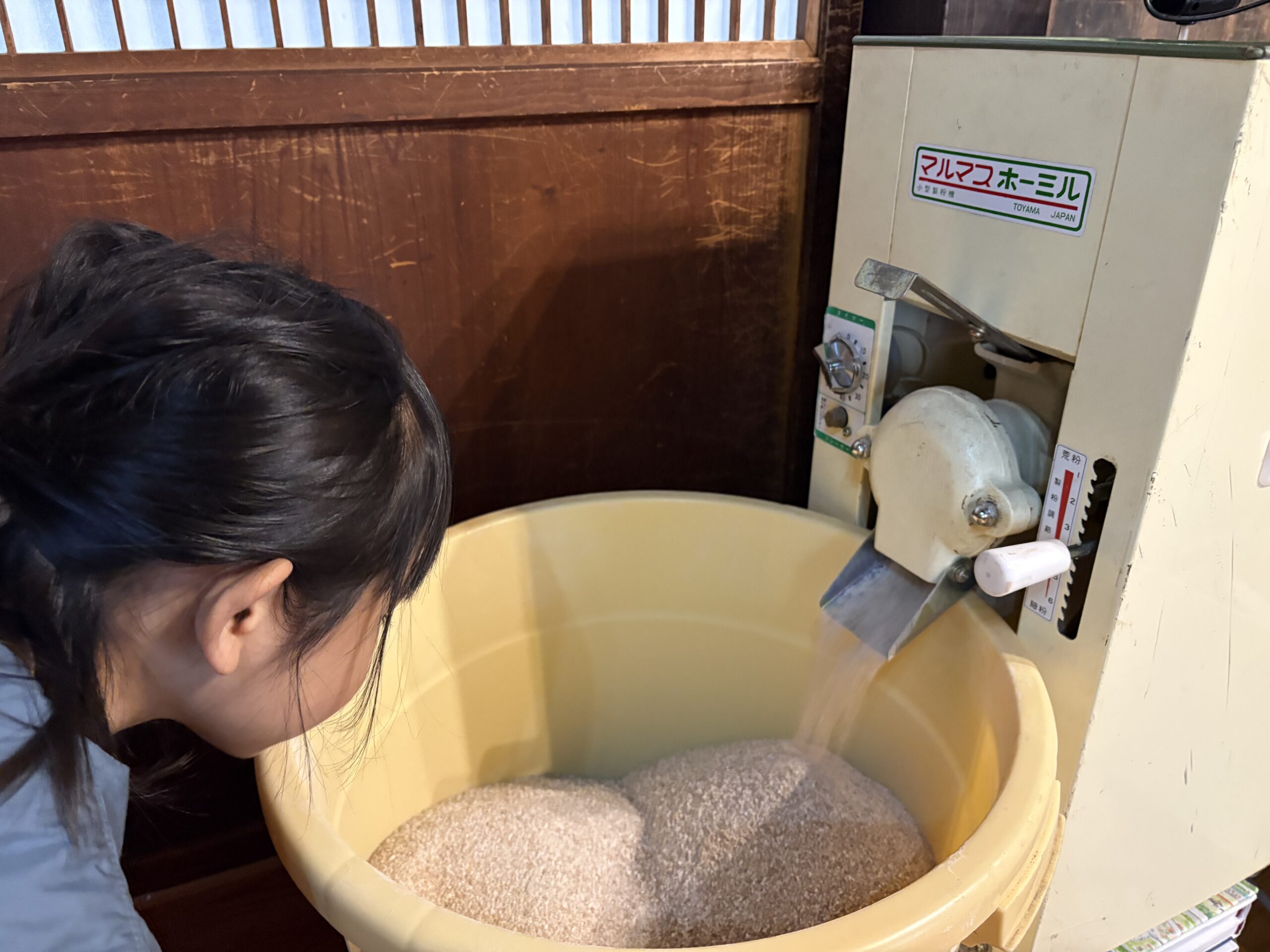 炒り上がった小麦は、製粉機にかけます。ここで目指すのは、サラサラの粉ではなく「1粒が3、4つに割れる」くらいのイメージです。