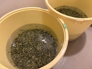大豆の洗豆と12時間の浸水
