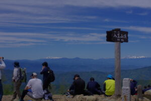 歩き始めから針葉樹の森で、樹林帯の静けさの中をひたすら登ります。派手な景色はありません。でも山頂に出たときの開放感はあります。南アルプス、北アルプス、浅間山。晴れた日の眺望は本物です。