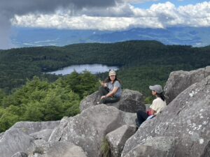 高見石に登ると、眼下に白駒池が広がります。展望台直下は岩を手足で登る箇所があるので、スニーカーより滑りにくい靴で来てください。登り切ったあとの景色と、小屋の揚げパンが待っています。