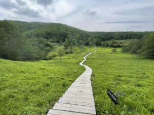 ゴンドラを降りてすぐ広がるのは、手つかずの自然が残る広大な湿原。木道を歩きながら、鳥のさえずりや湿原特有の生態系をじっくりと観察できます。湿原内にはトイレ(マナスル山荘付近)もあり、初心者の方も安心です。