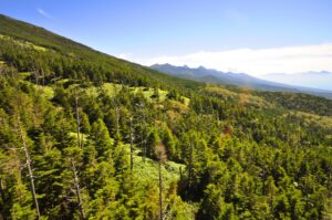 - 夏(8月): 下界の暑さが嘘のような涼しさです。縞枯山の広大な笹原が風に揺れ、サラサラという心地よい音が森に響きます。