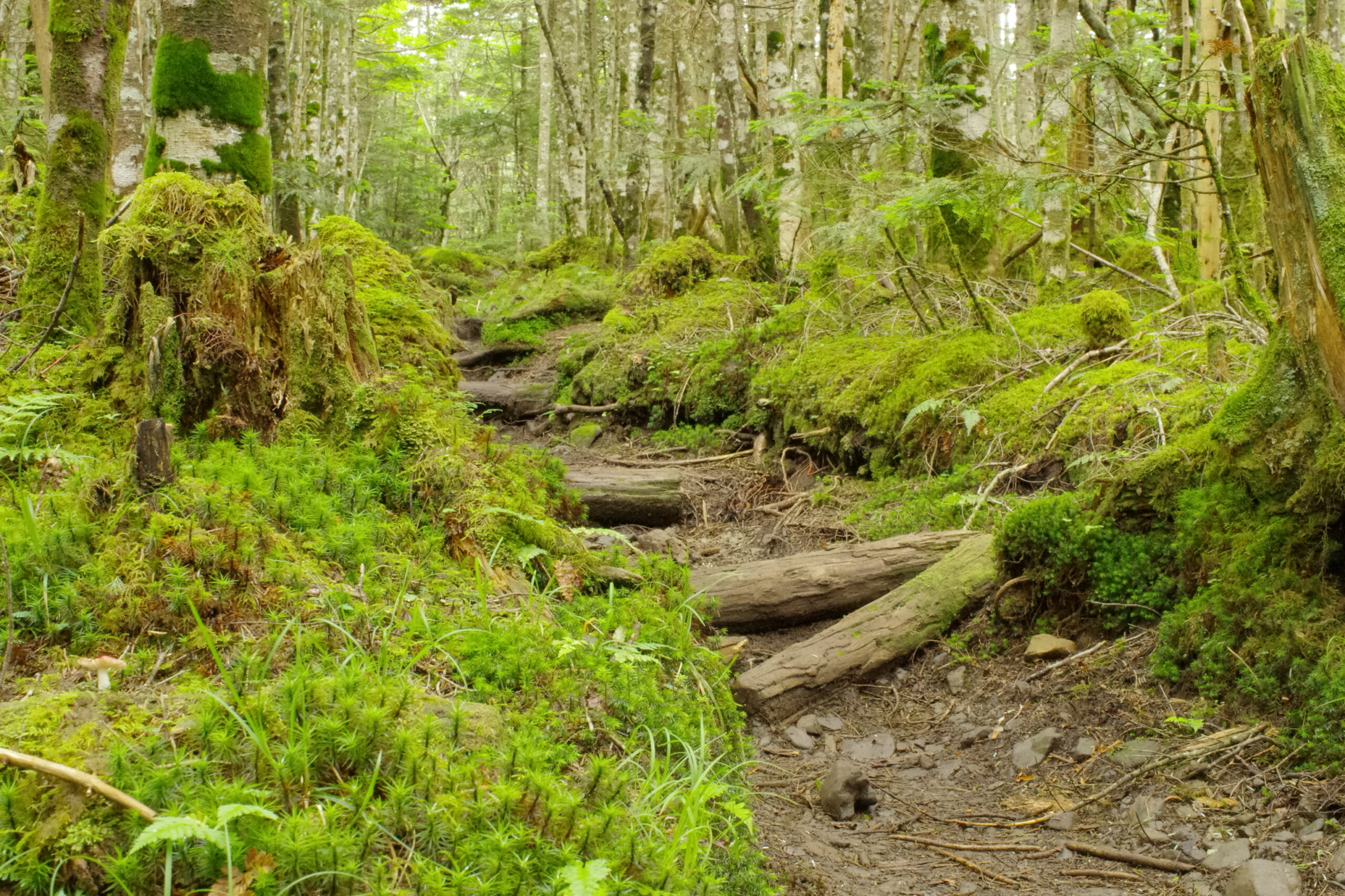 白駒池入口駐車場からスタートし、苔に覆われた神秘的な森を歩きながら、白駒荘を経て高見石まで往復するコースです。高見石の上からは北八ヶ岳の大展望を楽しむことができ、晴れた日には遠くの山々まで一望できます。タイミングが合えば、高見石小屋名物の揚げパンも味わえる、ゆったりとした自然散策です。